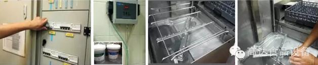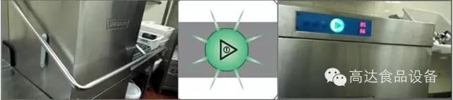 3、將碗筐推入機器,關(guān)門開始清洗,燈閃爍,正在清洗;燈長亮,清洗完畢
